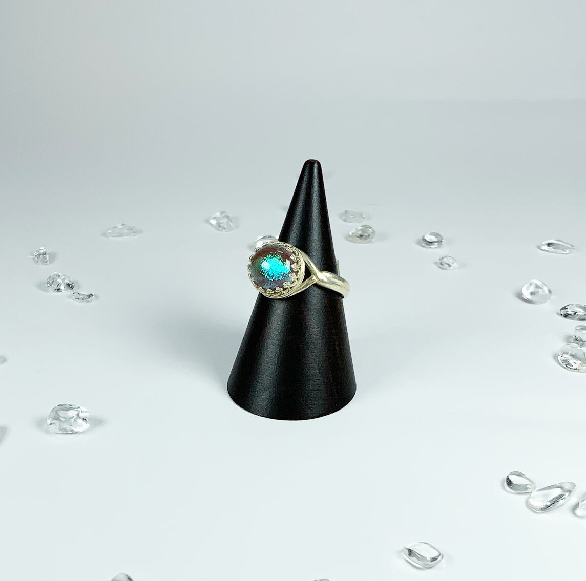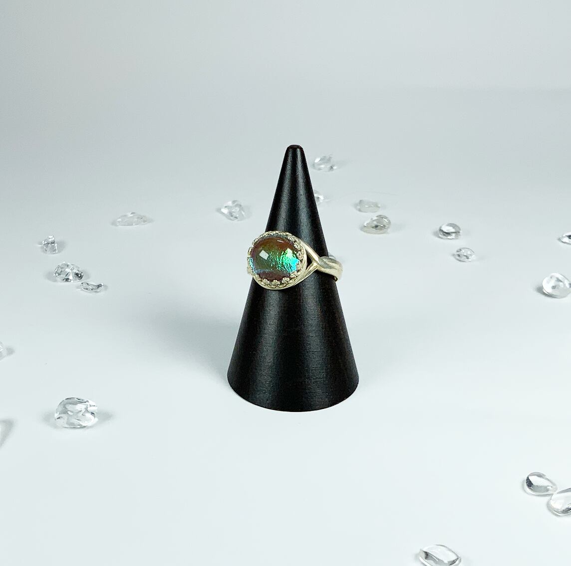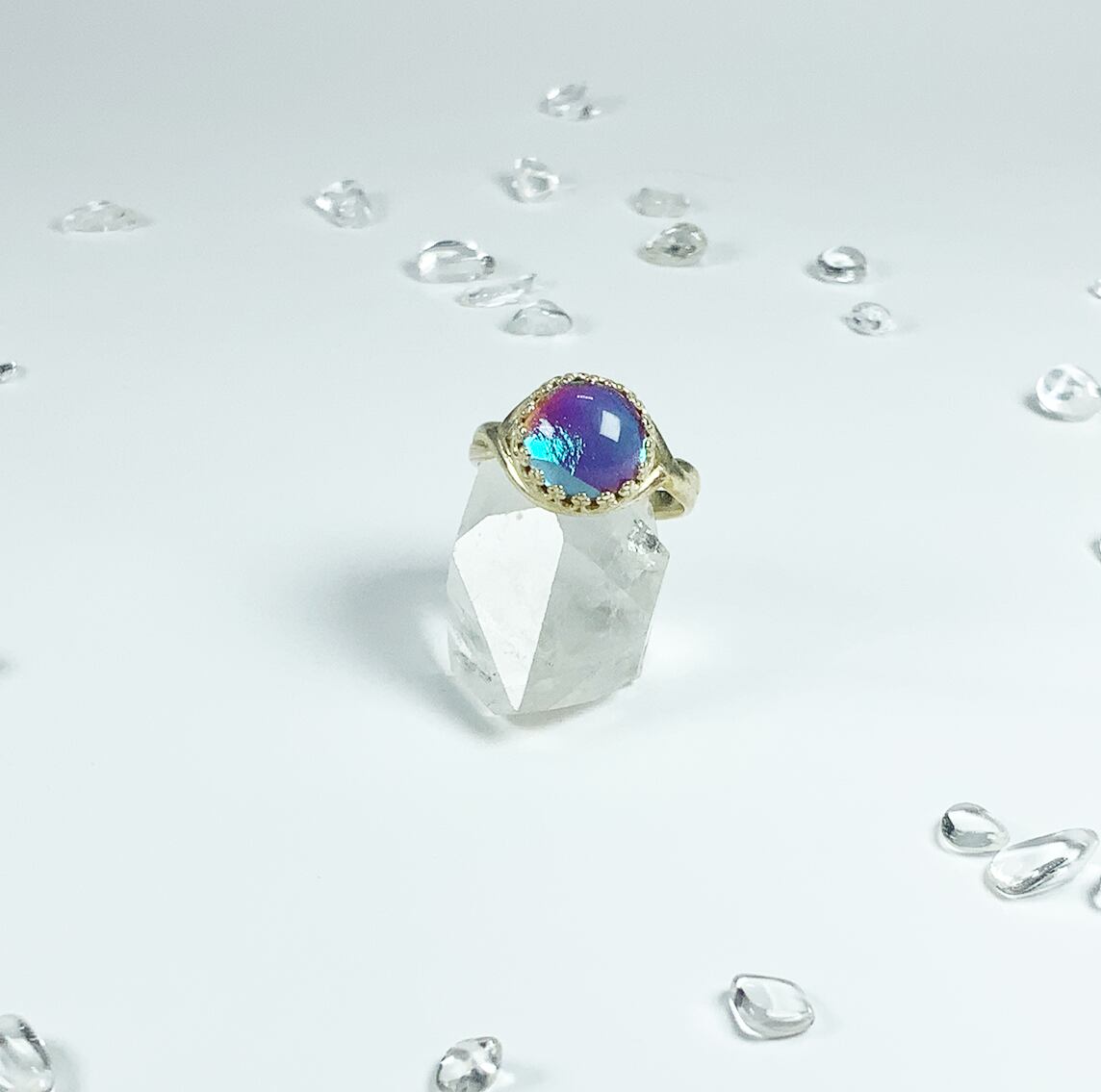 落ち着いたゴールドの台座が、幻想的な色彩を優しく包み込みます。