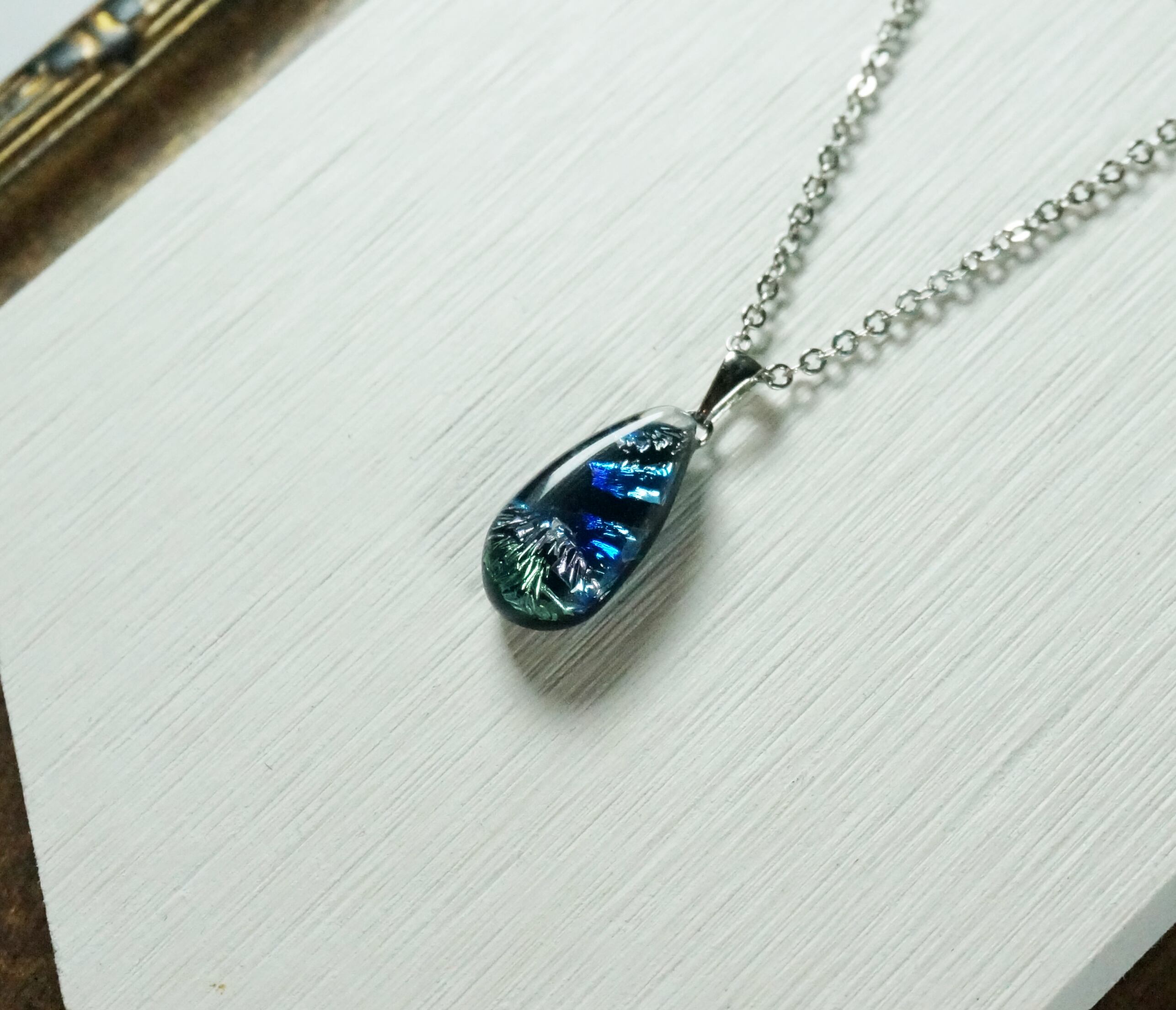 フュージングという技法で製作したガラスのペンダントです。