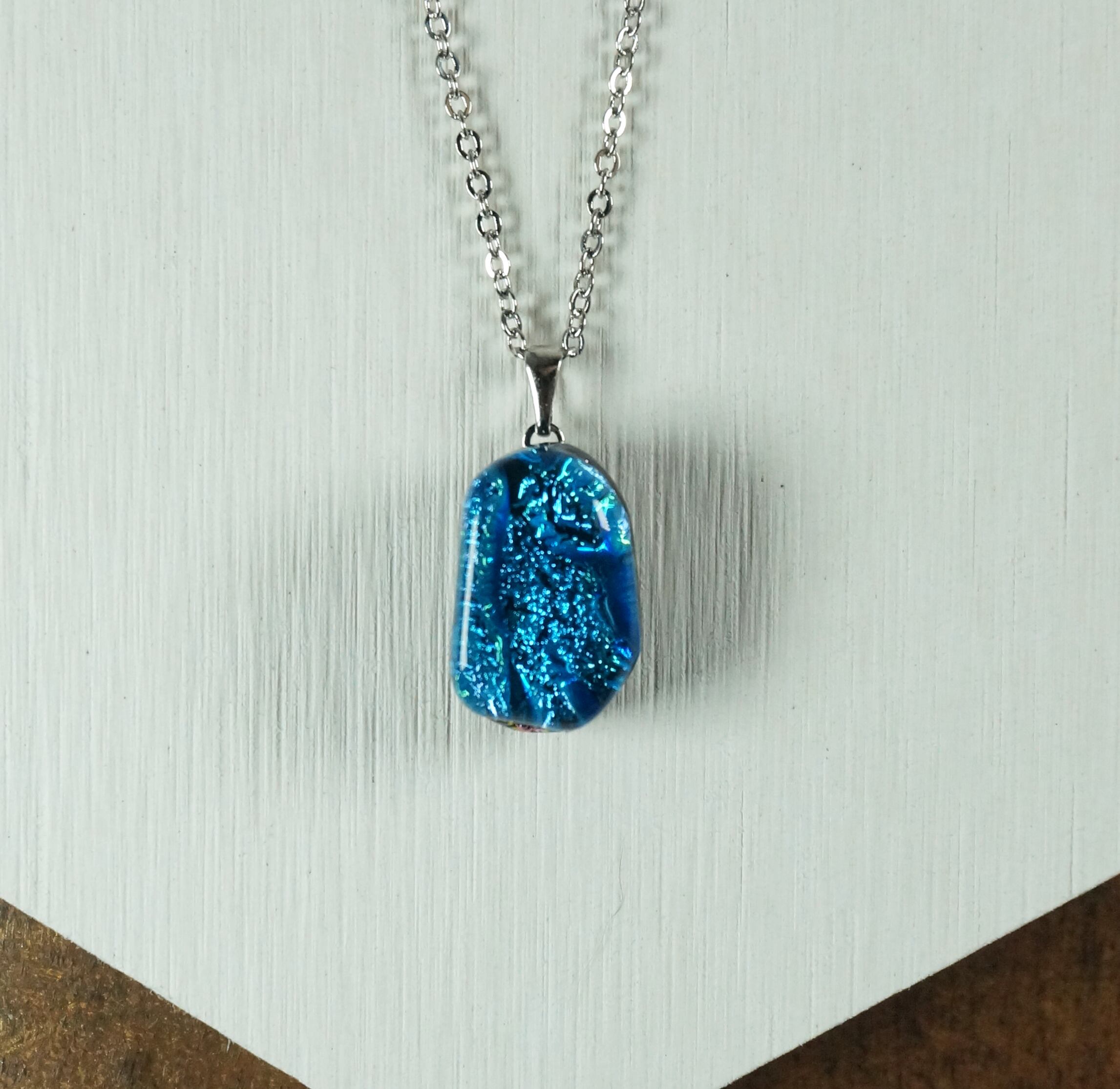 澄んだ青の奥に、光が樹のように広がるネックレス。