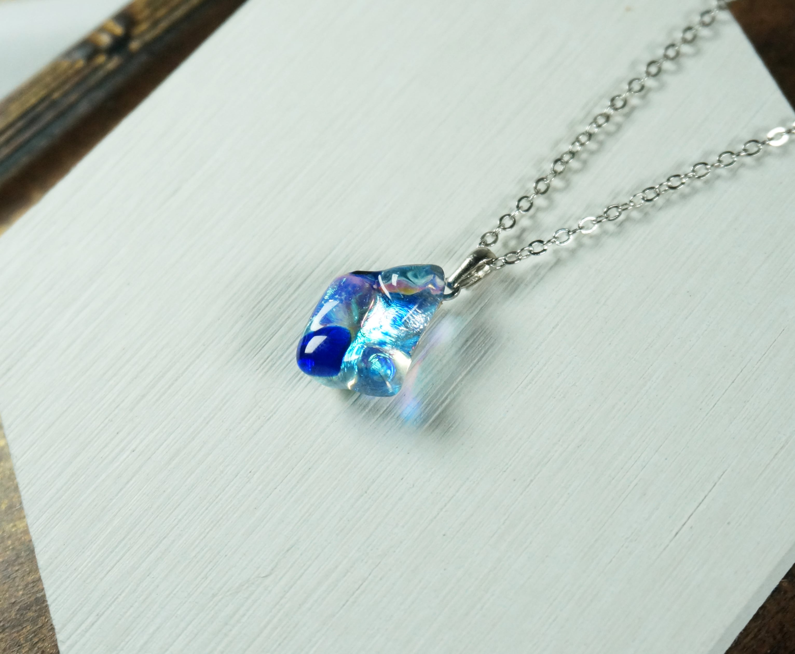 小さなガラスの中に宿る清らかな光が、装いに涼やかさを添える一点。